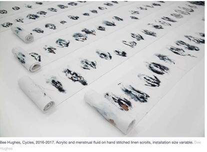 Cultural stigma about menstruation is found globally, manifesting in many different ways, including period poverty in the UK and exclusionary and discriminatory practices all over the world. There is a growing body of work on addressing menstrual stigma, with global activist communities increasing debate in the public and political realms. Menstrual art (sometimes called Menstrala, a term coined by the artist Vanessa Tiegs back in 2000), has a long history and over time has aimed to subvert the dialogue, stigma, and taboo surrounding periods.